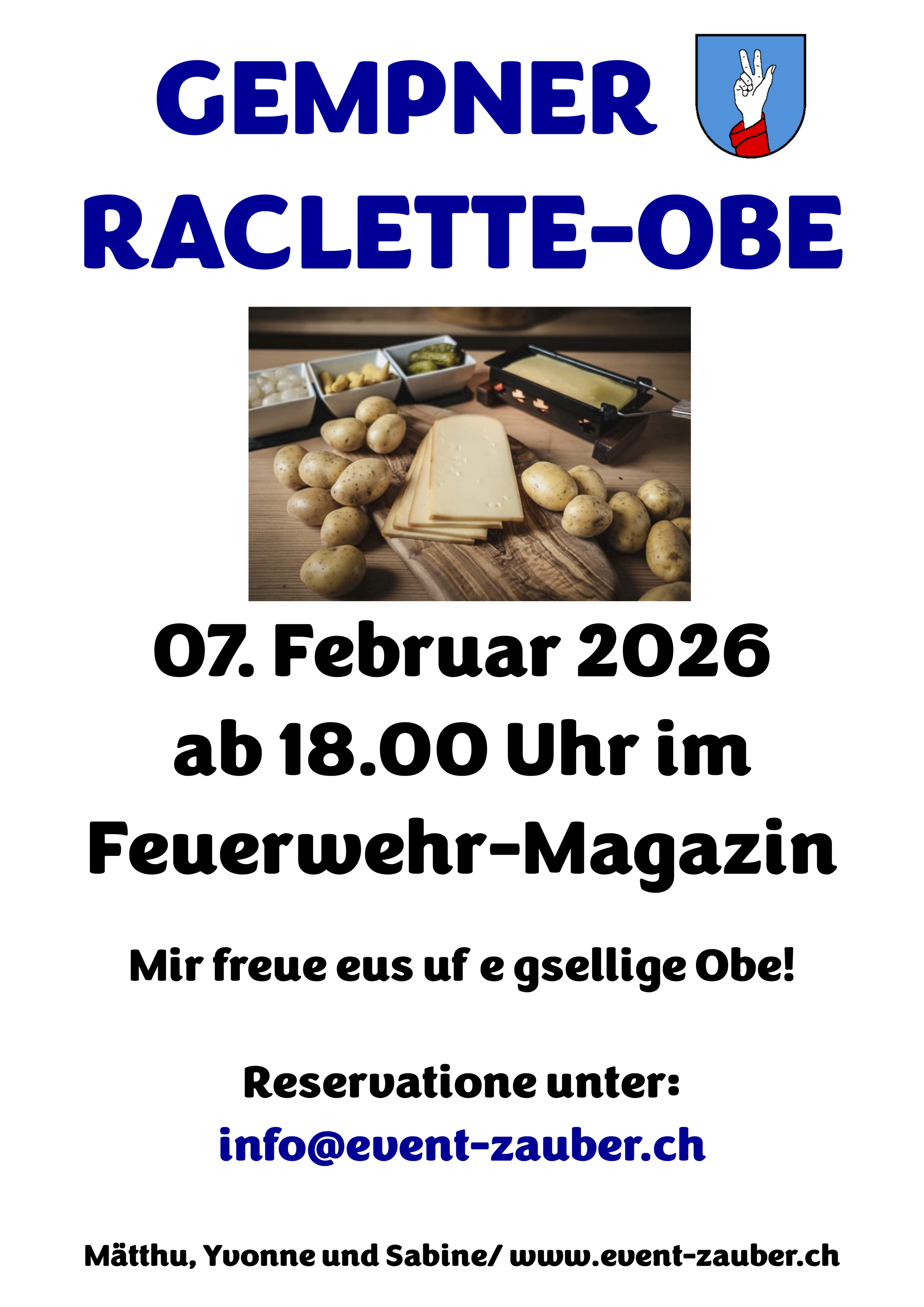 Raclette Abend Gempen Samstag 7. Februar 2026 im Feuerwehrmagazin